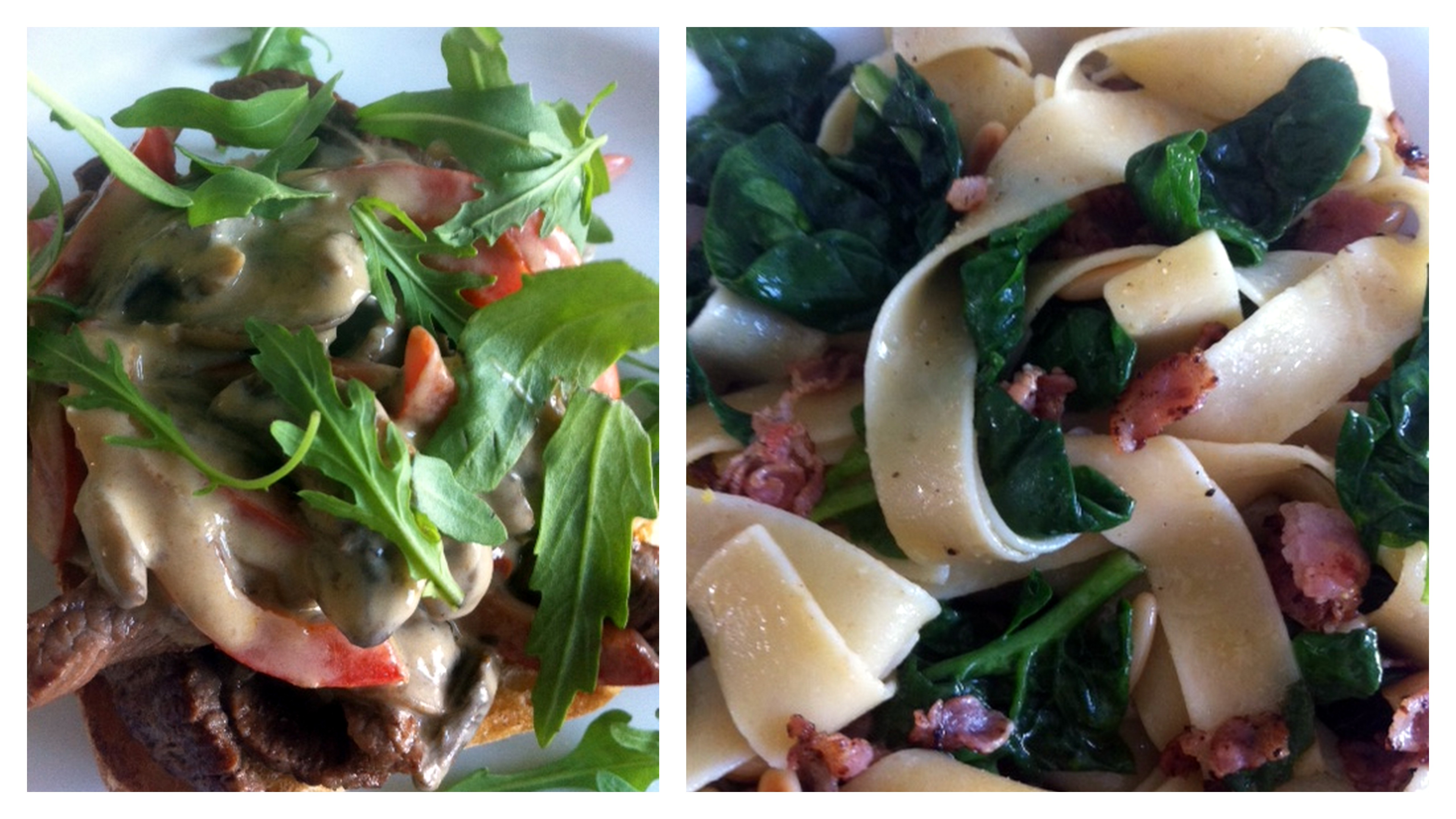 Spring baby leaf spinach, bacon and pine nut pasta with a lemon dressing