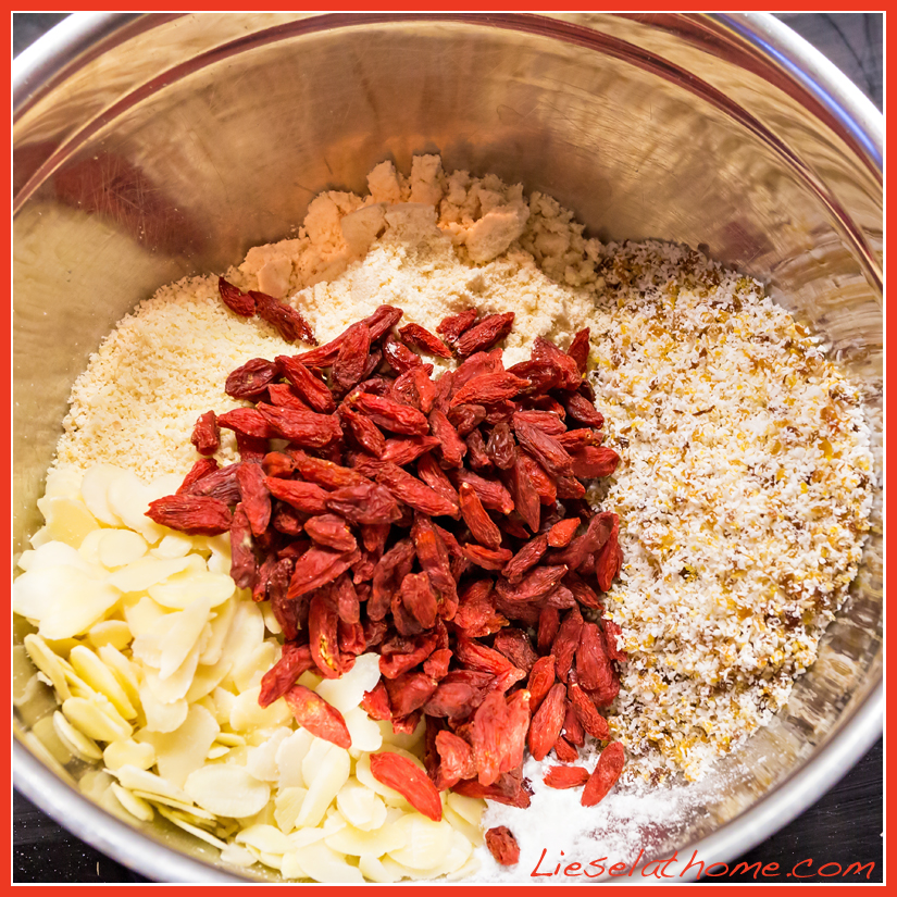 - 100 ml (0.4 cup) shredded coconut – grind this first together with
