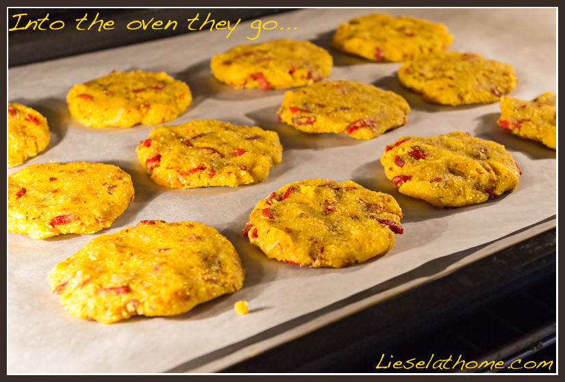 With your hands form little balls – press them flat and place them on a baking tray. (I had 13 cookies)