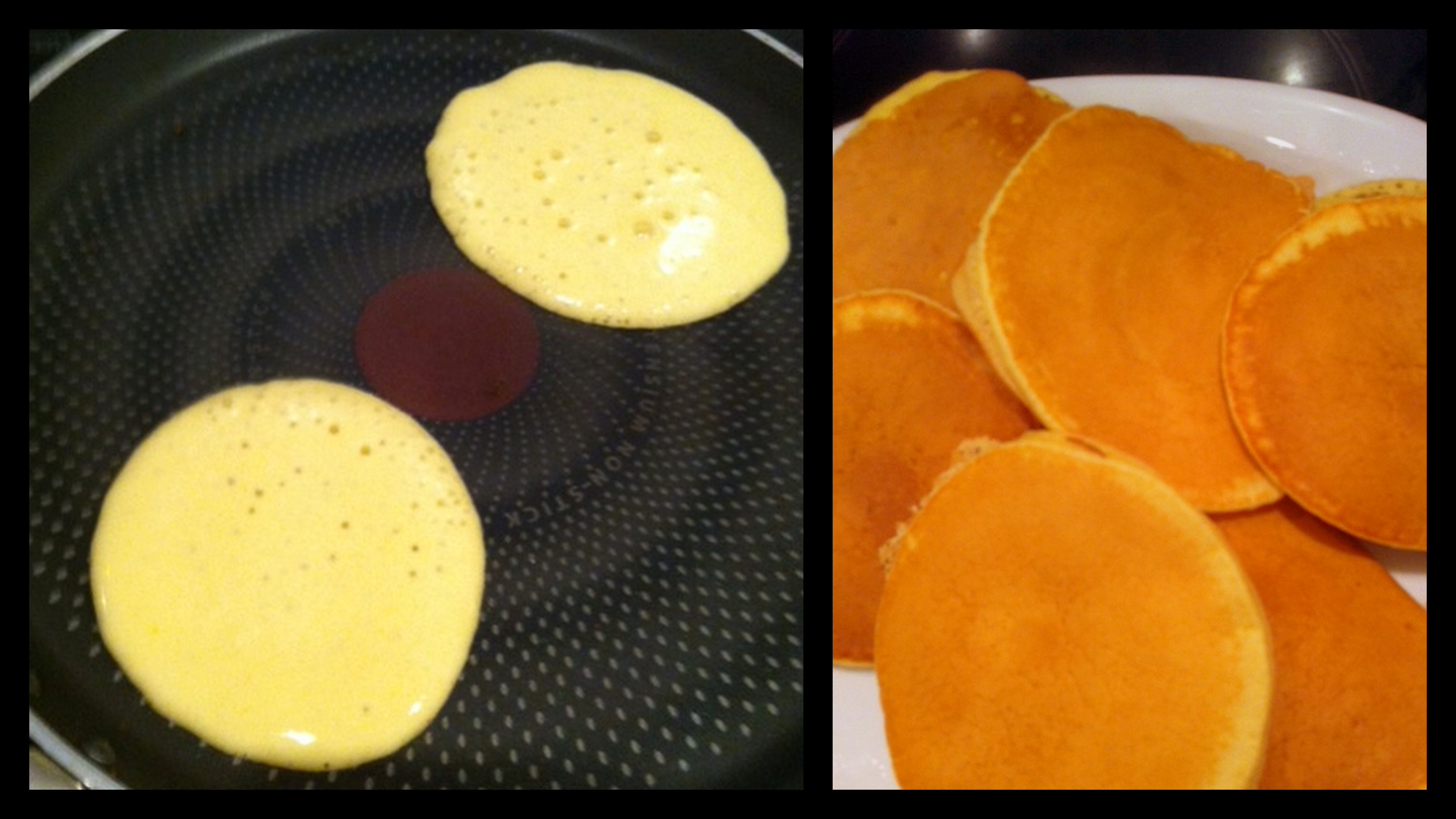 - Drop tablespoons of the mixture into the pan and flip the pancakes with a spatula when you see bubbles on top. They will be finished in seconds. Your pancakes should be golden brown.