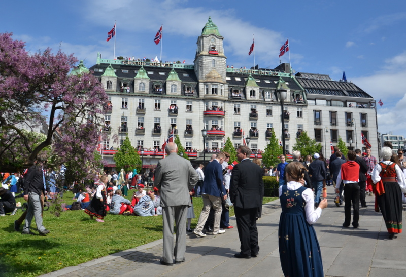 I decided to test this, and what occasion could be better than the bicentenary of the Norwegian constitution? Our National Day, 17 May, must surely be one of the most special National Days there are. The country turns into one long river of red, white and blue (and I’m telling you – it is long, about 1700 km from north to south!), and the streets of every town, big and small, fill up with school children and marching bands parading. In Oslo, every school parades in front of the Royal Palace, where the royal family greets them from the balcony for more than three hours straight.