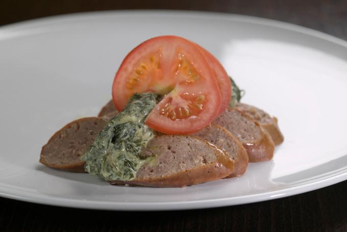 Add a stripe of warm, creamy spinach in the middle: Let finely chopped shallots and garlic simmer in butter or olive oil, add fresh spinach and cook until tender, then add a bit of cream and simmer briefly until thick, season with salt and pepper (roughly count 2 shallots / 1 clove garlic /1 dl cream per 250g spinach).
