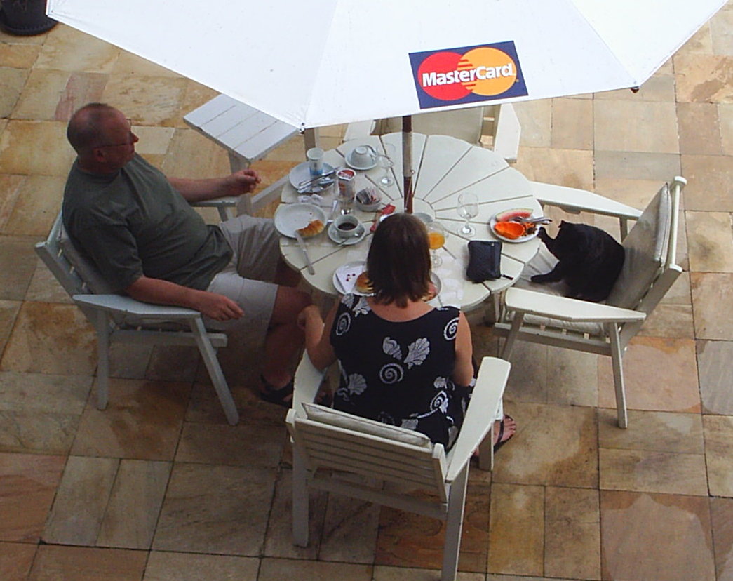 The first time we lived in Rio de Janeiro, we went to the most popular beach town, Buzios, for Easter. Just a couple of hours’ drive from Rio you find this charming old city with fantastic beaches. A hotel was recommended to us by a colleague, and it was great. However, not so great for a British couple, because every morning the hotel owner’s dog chose to sit himself at their table, just like a human being. My husband was on the veranda, looking down at the breakfast terrace and saw this hilarious tableau. The lady’s body language said it all…
