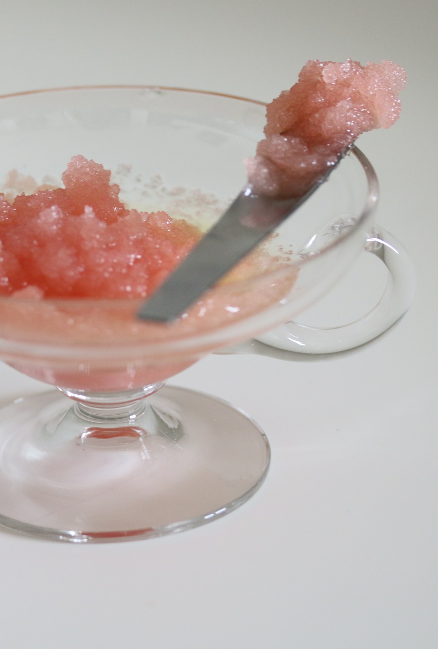 Mix a cup of sugar with a few drops of olive oil in a bowl and add some essential oil; peppermint is great for your feet (for colour I used a couple of drops of beetroot juice).