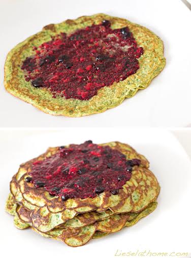 Fry the pancakes one by one in coconut oil or butter. Don’t worry about perfect shape – uneven pancakes looks adorable when stacked.